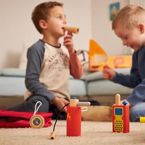 Pro všechny malé hasiče! Hasičská taška obsahuje všechny důležité pomůcky vyrobené ze dřeva - hasící přístroj, vysílačku, megafon, sekyru aj. Vše je určeno pouze pro hru. Hra na hasiče podporuje kreativitu. Vše je určeno pouze pro hru. Přátelský design a láskyplné detaily dělají z tašky atraktivní hračku pro všechny malé fanoušky hasičů. Sada obsahuje 7 ks dřevěných hasičských pomůcek.
