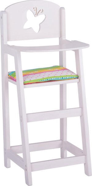 Dětská vysoká židlička pro panenky - Potěší mladší i starší "rodiče" panenek. Díky této židličce můžou panenky v klidu usednout a dopřát si zasloužený odpočinek. Židle je vyrobena z kvalitních materiálů a má skandinávský design. Díky tomuto jednoduchému designu se hodí do každého interiéru. Židle má zaoblené hrany, které zajišťují větší bezpečnost. Vyrobena ze dřeva. Součástí židličky je barevný polštářek Výška židle: cca 51 cm GOKI patří mezi nejvýznamnější evropské výrobce hraček s vysokou pedagogickou a didaktickou kvalitou. Firma klade důraz na bezpečnost hraček, jejich zdravotní nezávadnost a dbá na obnovitelné zdroje. Dřevo je bráno tam, kde může dorůstat. Používané dřeviny jsou javor, buk, ořech, lípa, jasan, borovice, bříza a gumovník. Barvy a laky pocházejí od menších výrobců.