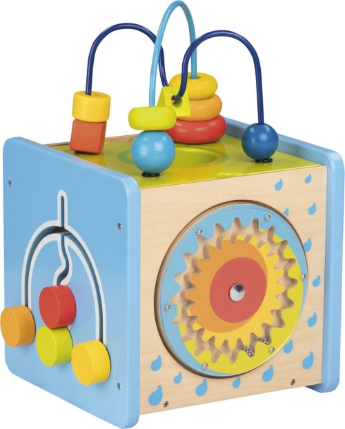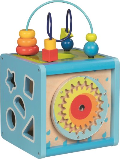 Motorická kostka 5v1 je vyrobena z pevného dřeva s pohyblivými prvky. Každá stěna má jinou funkčnost. Kostka obsahuje řadu pohyblivých prvků a knoflíků, které rozvíjejí manuální a kreativní schopnosti dítěte. Součástí je posuvný labyrint, na kterém můžete posunovat barevné korálky. Vzdělávací kostka účinně rozvíjí: hmat, zrak, koordinaci, pohyblivost rukou a prstů.