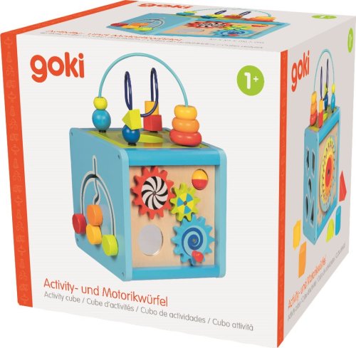 Rozměr kostky: 32,5 x 21 x 21 cm. Vhodné pro děti od 12 měsíců. GOKI patří mezi nejvýznamnější evropské výrobce hraček s vysokou pedagogickou a didaktickou kvalitou. Firma klade důraz na bezpečnost hraček, jejich zdravotní nezávadnost a dbá na obnovitelné zdroje. Dřevo je bráno tam, kde může dorůstat. Používané dřeviny jsou javor, buk, ořech, lípa, jasan, borovice, bříza a gumovník. Barvy a laky pocházejí od menších výrobců.