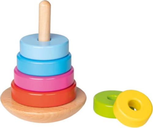 Zábavná skládačka s veselými barvami, jednotlivé dílky se nasouvají na tyčku, pořadí jednotlivých dílů lze měnit, podporuje motoriku a koordinaci očí a rukou, vyrobeno z masivního dřeva, použité barvy jsou zdravotně nezávadné, rozměr: výška 12 cm, max Ø 9 cm.
