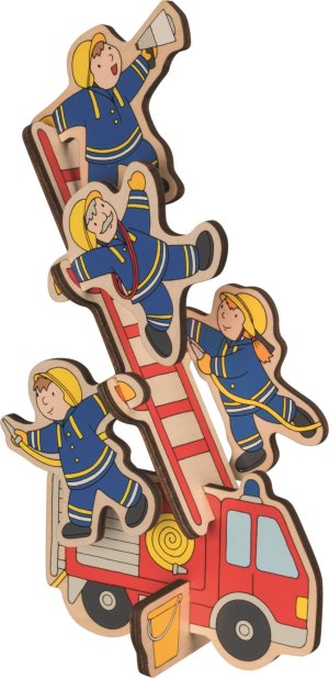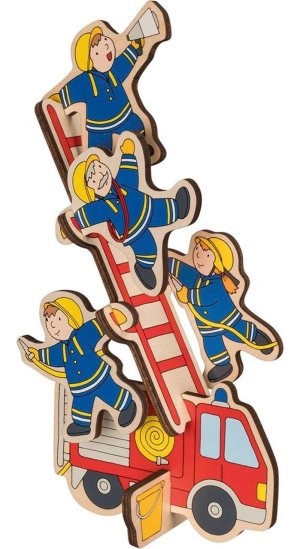 Barevná dětská vkládačka a 3D model v jednom. Děti mohou vkládat dílky na své místo v dřevěné podložce a nebo si z nich vytvořit prostorovou verzi hasičského zásahu. Výhody: