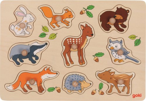 Vkládačka představuje roztomilá lesní zvířátka. Děti se je naučí pojmenovávat a přitom budou trénovat své malé prstíky.