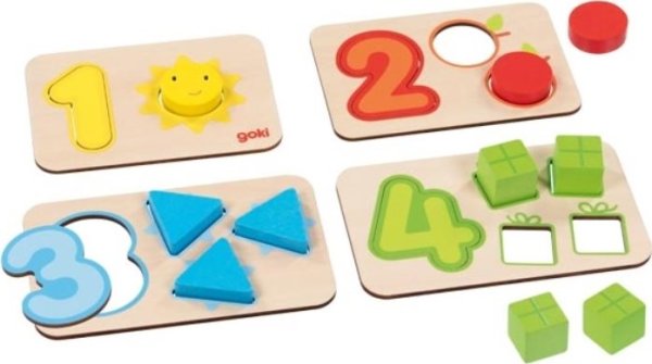 počítání, poznávání tvarů a čísel hravou formou, rozvoj koordinace oko-ruka, logického myšlení a představivosti, dřevěná podložka usnadní vkládání a zabezpečí, aby jednotlivé dřevěné dílky držely na svých místech.