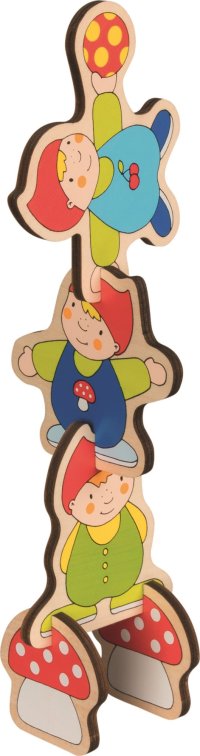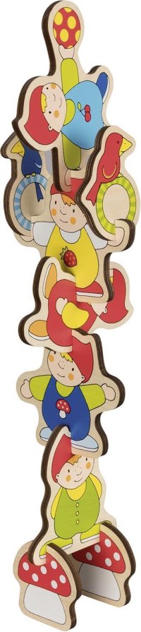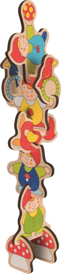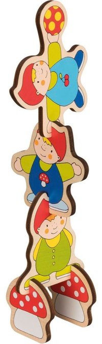Barevná dětská vkládačka a 3D model v jednom. Děti mohou vkládat dílky na své místo v dřevěné podložce a nebo si z nich vytvořit prostorovou verzi trpasličího veselí. Výhody:
