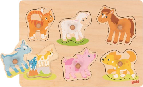 rozvoj koordinace oko-ruka, logického myšlení a představivosti, dřevěná podložka usnadňuje skládání a rámečky zabezpečují, aby jednotlivá dřevěná zvířátka držela na svých místech, každé zvířátko má podkladový obrázek, dřevěné úchytky pro snazší manipulaci.