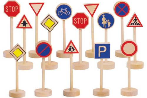 Dřevěné dopravní značky zabraňují nehodám při hře s auty a autodráhami, skvělá pomůcka pro osvojení základů silničních pravidel, příprava hrou pro budoucí návštěvu dopravního hřiště, vyrobeny z masivního dřeva, použité barvy jsou zdravotně nezávadné, snadné pro uchopení, výška značek: 11 cm, balení obsahuje 15 ks.