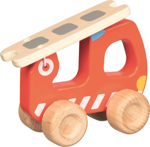 Dřevěné hasičské autíčko se žebříkem a otvorem pro snadné uchopení, použité barvy jsou zdravotně nezávadné, rozměr: 15,5 x 12 x 6,5 cm