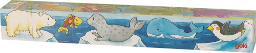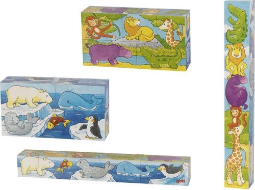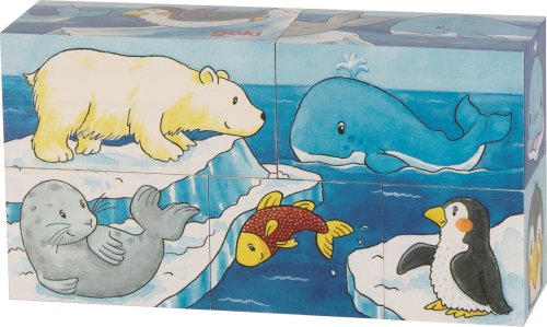 Dřevěné kostky s obrázky zvířátek z Arktidy jejich kamarády, které najdete v Arktidě. Kostky jsou skvělým dárkem pro Vaše nejmenší ratolesti. GOKI patří mezi nejvýznamnější evropské výrobce hraček s vysokou pedagogickou a didaktickou kvalitou. Firma klade důraz na bezpečnost hraček, jejich zdravotní nezávadnost a dbá na obnovitelné zdroje. Dřevo je bráno tam, kde může dorůstat. Používané dřeviny jsou javor, buk, ořech, lípa, jasan, borovice, bříza a gumovník. Barvy a laky pocházejí od menších výrobců.