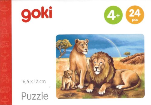Dětské puzzle ze dřeva s motivem africké fauny. Skládání puzzle rozvíjí fantazii a podporuje rozvoj motoriky. Doporučeno pro děti od 4 let. GOKI patří mezi nejvýznamnější evropské výrobce hraček s vysokou pedagogickou a didaktickou kvalitou. Firma klade důraz na bezpečnost hraček, jejich zdravotní nezávadnost a dbá na obnovitelné zdroje. Dřevo je bráno tam, kde může dorůstat. Používané dřeviny jsou javor, buk, ořech, lípa, jasan, borovice, bříza a gumovník. Barvy a laky pocházejí od menších výrobců. Rozměr složeného puzzle cca 17 x 12,5 cm