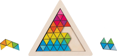 Mozaikové puzzle s hlavolamem v dřevěném rámečku je malou výzvou pro všechny kreativní děti. Znalost barev a špetka trpělivosti postačí k tomu, aby se podařilo z jednotlivých barevných dílků poskládat celé dílo.
