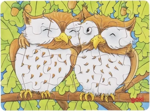 Dětské puzzle ze dřeva s motivem obyvatel lesa. Skládání puzzle rozvíjí fantazii a podporuje rozvoj motoriky. Doporučeno pro děti od 4 let. GOKI patří mezi nejvýznamnější evropské výrobce hraček s vysokou pedagogickou a didaktickou kvalitou. Firma klade důraz na bezpečnost hraček, jejich zdravotní nezávadnost a dbá na obnovitelné zdroje. Dřevo je bráno tam, kde může dorůstat. Používané dřeviny jsou javor, buk, ořech, lípa, jasan, borovice, bříza a gumovník. Barvy a laky pocházejí od menších výrobců. Rozměr složeného puzzle cca 17 x 12 cm