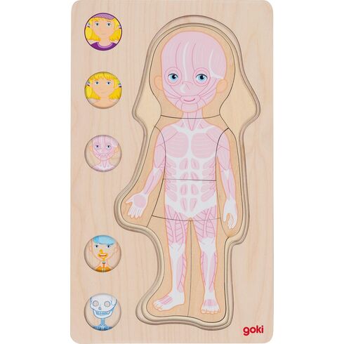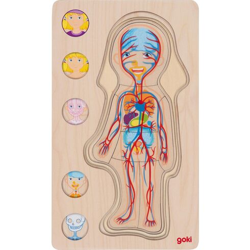 Máte zvídavé dítě, které se pořád na všechno vyptává a zajímá ho, jak věci fungují? A chce vědět, jak to vypadá uvnitř těla? Toto dřevěné puzzle skládající se z barevných vrstev názorně ukáže vnitřní uspořádání dívčího těla - kostru, krevní oběh, vnitřní orgány a svaly. Svlékejte vrstvu za vrstvou a prozkoumejte malé a velké kosti, tepny a žíly. Najdete, kde se nacházejí plíce, játra nebo slezina? Toto dřevěné puzzle přináší nejen nové poznatky, ale trénuje současně motorické dovednosti dětí. Hlavní vlastnosti: lidské tělo zobrazeno v pěti vrstváchrozvíjí touhu po vědění a znalostitrénuje jemnou motorikuvhodné jako výuková pomůcka pro menší děti