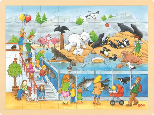Dětské puzzle ze dřeva. Dílky jsou umístěny na dřevěné desce s vyfrézovaným obrysem pro usnadnění skládání. Skládání puzzle rozvíjí fantazii a podporuje rozvoj motoriky. Doporučeno pro děti od 3 let. GOKI patří mezi nejvýznamnější evropské výrobce hraček s vysokou pedagogickou a didaktickou kvalitou. Firma klade důraz na bezpečnost hraček, jejich zdravotní nezávadnost a dbá na obnovitelné zdroje. Dřevo je bráno tam, kde může dorůstat. Používané dřeviny jsou javor, buk, ořech, lípa, jasan, borovice, bříza a gumovník. Barvy a laky pocházejí od menších výrobců. Rozměr složeného puzzle cca 38 x 28 cm