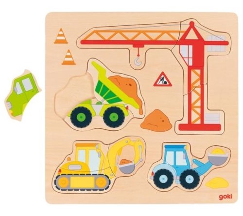 Dřevěné vkládací puzzle pro nejmenší děti s motivem strojů, které se používají na stavbách. Vkládací puzzle je opatřeno kvalitním potiskem. Vyrobeno z překližky. Výhody: