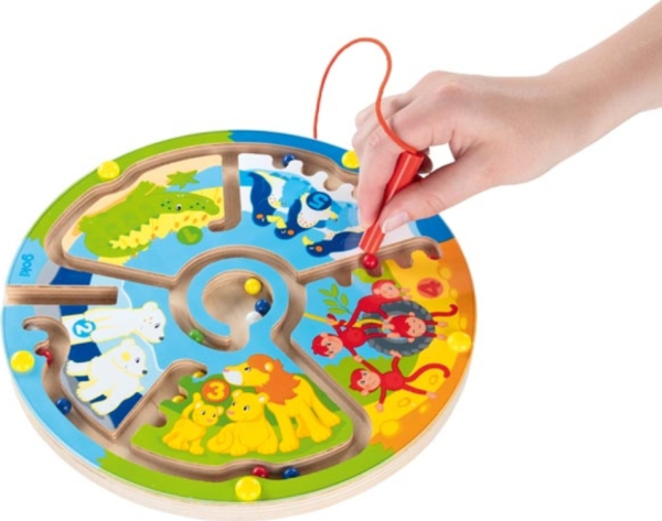 kuličky lze vést celým bludištěm dvěma způsoby: - p rvním způsobem (tradičně) - pomocí magnetické „tyče“, která vyžaduje, aby se dítě soustředilo - druhým způsobem - k různým cílům, rozdělit dle barev