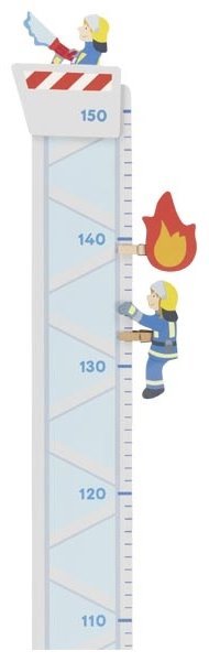 Dřevěný metr s hasičským autem lze zavěsit na zeď. Použití pro výšku dítěte od 80 do 150 cm, 2 kolíčky pro zaznamenání výšky dítěte ( šplhající hasič a plamen ohně ), poslouží i jako krásná dekorace do dětského pokoje, vyrobeno z překližky, použité barvy jsou zdravotně nezávadné, rozměr: výška 94 cm.