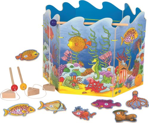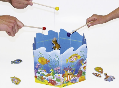 Jak dlouho ti bude trvat ulovit všechny mořské živočichy? Postav oceán, rozmísti mořské živočichy, uchop rybářský prut s magnetem zavěšeným na provázku do ruky a pokus se je všechny pochytat. V této magnetické hře děti soutěží, kdo naloví pomocí magnetků připevněných na udičkách více rybiček. Balení obsahuje : 15 mořských živočichů, 3 udičky a skládací oceán (Ø 30 cm, výška 22cm) .