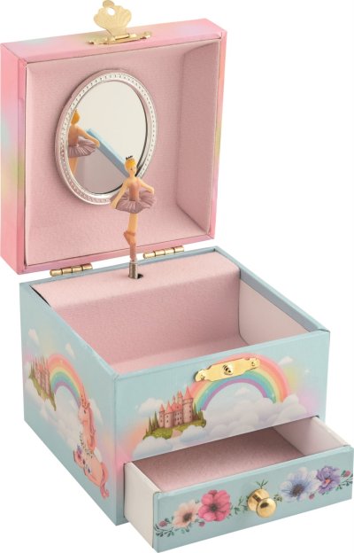 Šperkovnice ve stylu hrací skříňky potěší malé dámy, které touží uložit své šperky jak se patří. Po otevření skříňky začne hrát jemná melodie z opery Labutí jezero a malá baletka se roztančí před svým zrcadlem. Rozměry skříňky: 11 x 11,1 x 10 cm. Upozornění: Výrobek není hračka, jedná se o dekorativní předmět. GOKI patří mezi nejvýznamnější evropské výrobce hraček s vysokou pedagogickou a didaktickou kvalitou. Firma klade důraz na bezpečnost hraček, jejich zdravotní nezávadnost a dbá na obnovitelné zdroje. Dřevo je bráno tam, kde může dorůstat. Používané dřeviny jsou javor, buk, ořech, lípa, jasan, borovice, bříza a gumovník. Barvy a laky pocházejí od menších výrobců.
