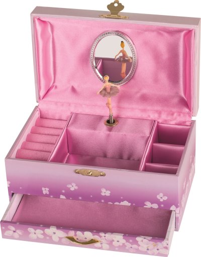 Šperkovnice ve stylu hrací skříňky potěší malé dámy, které touží uložit své šperky jak se patří. Po otevření skříňky začne hrát jemná melodie z opery Labutí jezero a malá baletka se roztančí před svým zrcadlem. Rozměry skříňky: 19 x 11 x 9,5 cm. Upozornění: Výrobek není hračka, jedná se o dekorativní předmět. GOKI patří mezi nejvýznamnější evropské výrobce hraček s vysokou pedagogickou a didaktickou kvalitou. Firma klade důraz na bezpečnost hraček, jejich zdravotní nezávadnost a dbá na obnovitelné zdroje. Dřevo je bráno tam, kde může dorůstat. Používané dřeviny jsou javor, buk, ořech, lípa, jasan, borovice, bříza a gumovník. Barvy a laky pocházejí od menších výrobců.