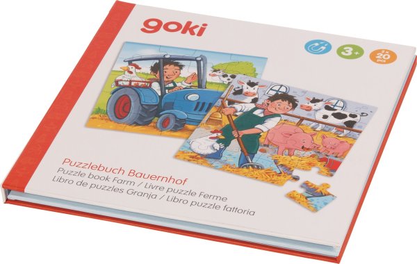 Kniha s krásnými obrázky ze života na statku obsahuje 4 obrázky, z nichž dva jsou vytvořeny jako puzzle ze 20 magnetických dílků.