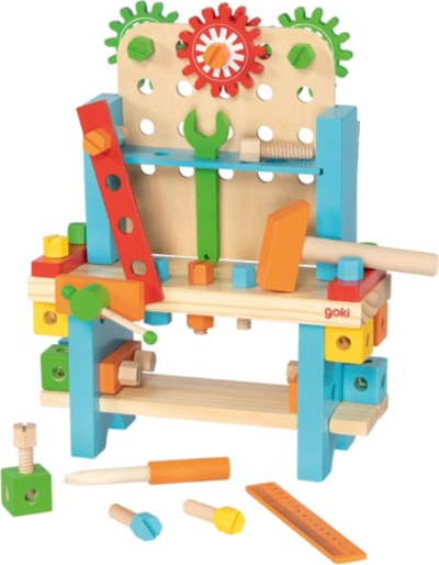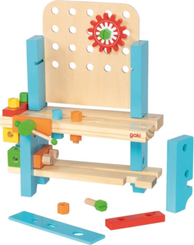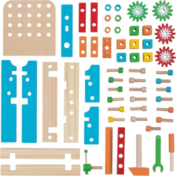 obsahuje: kladivo, klíč, šroubovák se šroubky a další doplňky stůl lze tvarově upravovat a poté zase rozebrat děti se mohou hravou formou učit poznávat barvy podporuje představivost