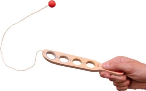 Dokážeš prohodit míček jedním ze čtyř otvorů? Kdo jako první zvládne získat 100 bodů? Tato tradiční dětská hra ze dřeva je ideálním dárkem pro malé i velké. Procvičuje motoriku a koordinaci pohybů, zručnost a rychlé reakce. Velikost: 19,5 cm