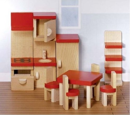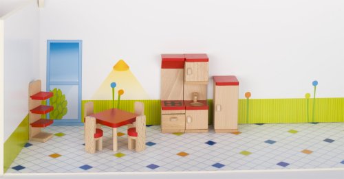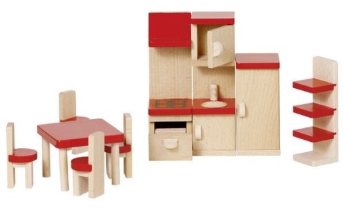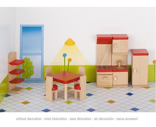 Komplet v klasickém designu pro pohyblivé panenky patří do série Goki Basic. Hodí se do domečků nebo pro samostatné hraní. Vhodné do všech domečků pro panenky značky Goki. Solidní a stabilní nábytek z masivního dřeva. Výška kuchyňské linky je 14,3 cm. Balení obsahuje 9 ks nábytku.