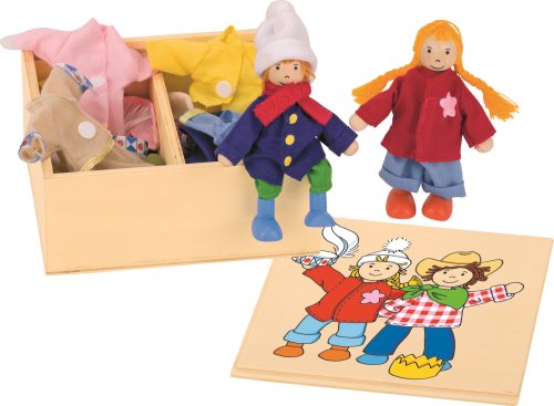 Balení obsahuje: dřevěnou krabičku, 2 ks flexibilních postaviček (Birte a Bena) a 8 sad oděvů. GOKI patří mezi nejvýznamnější evropské výrobce hraček s vysokou pedagogickou a didaktickou kvalitou. Firma klade důraz na bezpečnost hraček, jejich zdravotní nezávadnost a dbá na obnovitelné zdroje. Dřevo je bráno tam, kde může dorůstat. Používané dřeviny jsou javor, buk, ořech, lípa, jasan, borovice, bříza a gumovník. Barvy a laky pocházejí od menších výrobců.