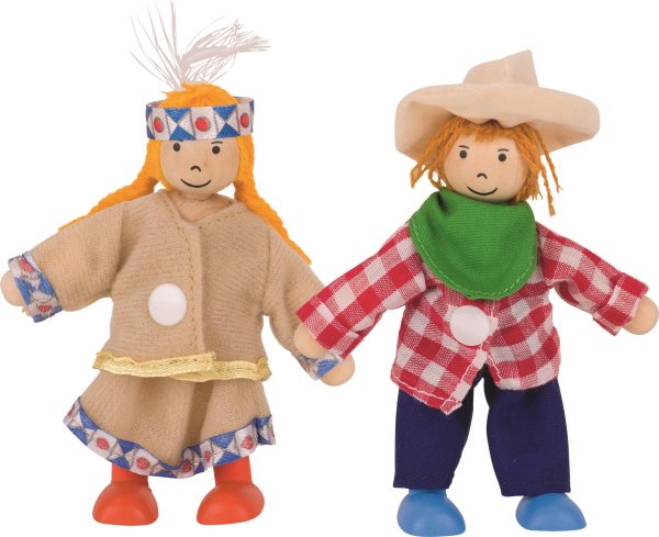Dřevěné panenky jsou pohyblivé, mohou sedět, stát nebo ležet. Hodí se do domečků nebo pro samostatné hraní. Vhodné do všech domečků pro panenky značky Goki. Použitý materiál: dřevo, drát, různé druhy textilií. Výška panenek: 10 cm.