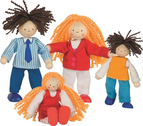 Dřevěné panenky jsou pohyblivé, mohou sedět, stát nebo ležet. Hodí se do domečků nebo pro samostatné hraní. Vhodné do všech domečků pro panenky značky Goki. Použitý materiál: dřevo, drát, různé druhy textilií. Výška panenek: 9 - 11 cm. Balení obsahuje 4 ks: maminku, tatínka, dceru a syna.