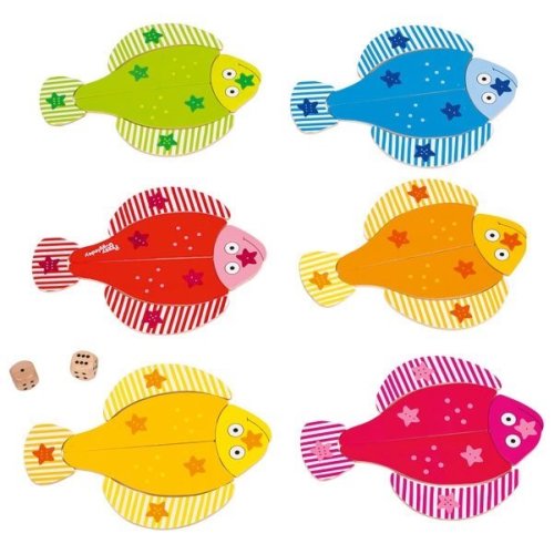 Hraje se s kostkami a barevnými rybami. Ryby - platýsi se skládají z očíslovaných dílků puzzle. Hod kostkou určí, který dílek bereš a skládáš. Hráč, který má nejvíce celých obrázků, vyhrál.