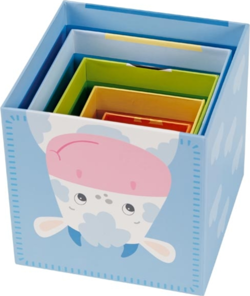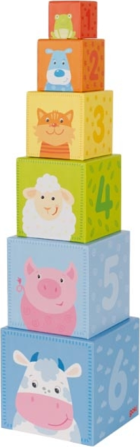 balení obsahuje: 6 kostek z pevného kartonu velikost největší kostky: 14,3 x 14,3 x 14,3 cm celková výška po sestavení: 58 cm