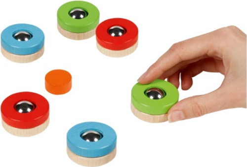 Hra obsahuje: 6 barevných kamenů Ø 4,5 cm, 1 puk, bavlněný pytlík, návod. GOKI patří mezi nejvýznamnější evropské výrobce hraček s vysokou pedagogickou a didaktickou kvalitou. Firma klade důraz na bezpečnost hraček, jejich zdravotní nezávadnost a dbá na obnovitelné zdroje. Dřevo je bráno tam, kde může dorůstat. Používané dřeviny jsou javor, buk, ořech, lípa, jasan, borovice, bříza a gumovník. Barvy a laky pocházejí od menších výrobců.
