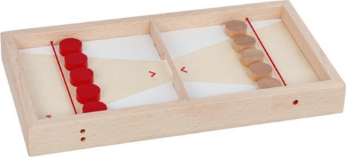 Hra obsahuje: hrací desku, 10 barevných kamenů, návod. Hrací deska je vyrobena ze dřeva a dodává se v krabici z tvrdého papíru. Upozornění: Barevný odstín výrobku se může mírně lišit v závislosti na použitém materiálu. GOKI patří mezi nejvýznamnější evropské výrobce hraček s vysokou pedagogickou a didaktickou kvalitou. Firma klade důraz na bezpečnost hraček, jejich zdravotní nezávadnost a dbá na obnovitelné zdroje. Dřevo je bráno tam, kde může dorůstat. Používané dřeviny jsou javor, buk, ořech, lípa, jasan, borovice, bříza a gumovník. Barvy a laky pocházejí od menších výrobců.