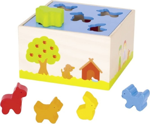 Rozměr boxu: 16 x 16 x 7,5 cm. Obsahuje: box z přírodního dřeva s víkem, 5 barevných tvarů. GOKI patří mezi nejvýznamnější evropské výrobce hraček s vysokou pedagogickou a didaktickou kvalitou. Firma klade důraz na bezpečnost hraček, jejich zdravotní nezávadnost a dbá na obnovitelné zdroje. Dřevo je bráno tam, kde může dorůstat. Používané dřeviny jsou javor, buk, ořech, lípa, jasan, borovice, bříza a gumovník. Barvy a laky pocházejí od menších výrobců.