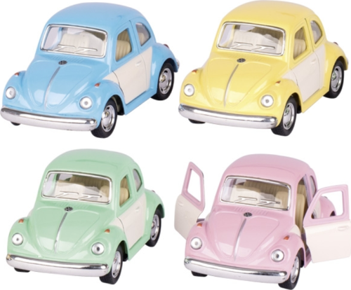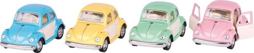VW Beetle, odlitek, model 1967, s motorem na zpětné natažení a živými barvami, které jdou dokonale ladí s nezaměnitelným designem, rozbuší nejen dětská srdce. Autíčko o velikosti 10 cm může mít každý kluk neustále u sebe. Vejde se do větší kapsy nebo mamince do kabelky a cestování či dlouhé čekání tak rychle uteče. Skvělé na hraní nebo závodění. Rozměry: 10 x 5,5 x 5,5 cm.