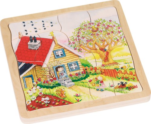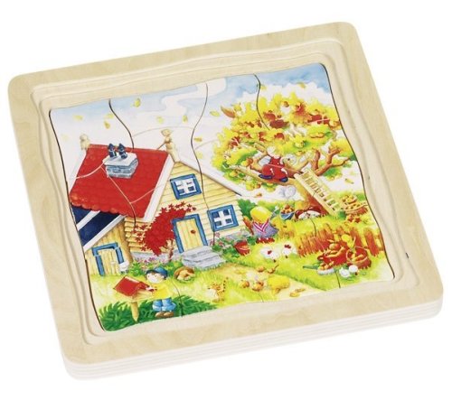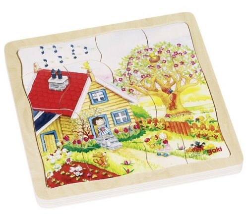 Seznam se s ročními obdobími. Nová forma edukativní zábavy. Vývojové puzzle je nejen nevšední dřevěnou hračkou, ale i výbornou učební pomůckou. Puzzle se skládá ze čtyř obrázků, z nichž každý zobrazuje jedno roční období - jaro, léto, podzim a zima. Každá vrstva má jiný obrázek a odlišný počet dílků. Vícevrstvé dřevěné puzzle je umístěné v desce (jednotlivé vrstvy různě vyfrézované) s pevným okrajem, která slouží zároveň jako podložka pro skládání. Skládání puzzle rozvíjí fantazii, učí děti zábavnou formou základy přírodovědy a podporuje rozvoj motoriky. Doporučeno pro děti od 3 let. GOKI patří mezi nejvýznamnější evropské výrobce hraček s vysokou pedagogickou a didaktickou kvalitou. Firma klade důraz na bezpečnost hraček, jejich zdravotní nezávadnost a dbá na obnovitelné zdroje. Dřevo je bráno tam, kde může dorůstat. Používané dřeviny jsou javor, buk, ořech, lípa, jasan, borovice, bříza a gumovník. Barvy a laky pocházejí od menších výrobců.
