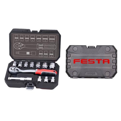 Gola sada - CrV FESTA kvalitní gola sada díly a hlavice vyrobeny z chromvanadiové oceli odolný plastový kufr v moderním designu - kovové panty a zámky obsah balení: ráčna 1/2" prodloužení 1/2": 125 mm …