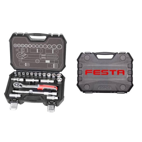 kvalitní gola sada díly a hlavice vyrobeny z chromvanadiové oceli odolný plastový kufr v moderním designu - kovové panty a zámky obsah balení: velikost ráčny1/2": 72T prodloužení 1/2": 75, 125 mm kloub …