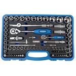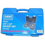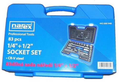 83dílná gola sada šestihranných hlavic 1/4" a 1/2" s povrchovou úpravou matný chrom - micro satin v plastovém kufříku. Nástavce jsou opatřeny vroubkovanou částí pro pohodlnou manipulaci při práci. Sada je určena výhradně pro ruční použití.