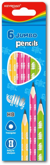 Sada grafitových tužek KEYROAD Neon Jumbo V atraktivních neonových barvách Tvrdost - č 2 (HB) Průměr jádra - 4 mm Sada obsahuje 6 kusů tužek Dodávané v papírové krabičce