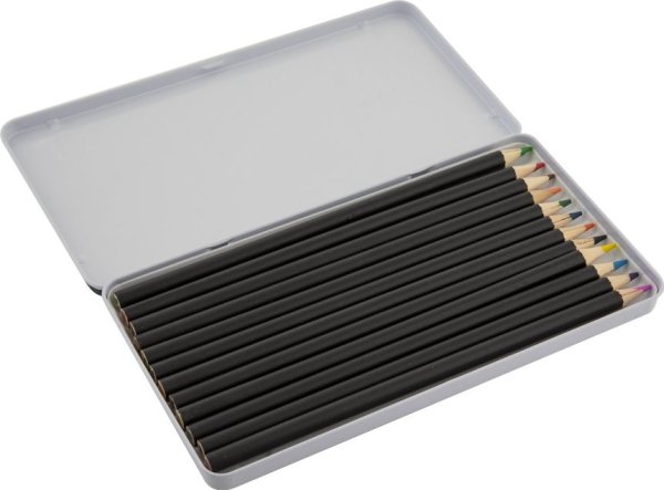 Souprava 12 kusů pastelek v plechovém pouzdře potěší každého malého umělce i školáka.