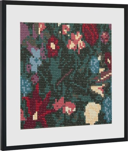 Postup: Horní strana plátna je potažena folií s lepicí vrstvou. Sundávejte ji postupně po částech tak, jak budete aplikovat kamínky. Při sejmutí celé folie najednou se může lepicí vrstva znečistit a kamínky by nemusely tak dobře držet. Plátno obsahuje znaky, které jsou uvedeny v přiložené legendě a odkazují na příslušný sáček s kamínky označený číslem. Kamínky z daného sáčku vysypejte do misky. Do hrotu pera naberte vosk, díky kterému se kamínky snadno přichytí na pero. Kamínky perem aplikujte na obrázek. Po nalepení dané barvy kamínky nasypejte zpět do sáčku a pokračujte s další barvou. Poznámka: Rám není součástí balení.