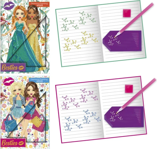 Poznámka: Balení obsahuje 1ks zápisníku s příslušenstvím. Obrázek je pouze ilustrativní. Provedení dodáváme dle skladové zásoby. Diamantové malování - postup: Kamínky vysypejte do misky. Do hrotu pera naberte vosk, díky kterému se kamínky snadno přichytí na pero. Kamínky perem nanášejte na obrázek. Po nalepení dané barvy kamínky nasypejte zpět do sáčku a pokračujte s další barvou.