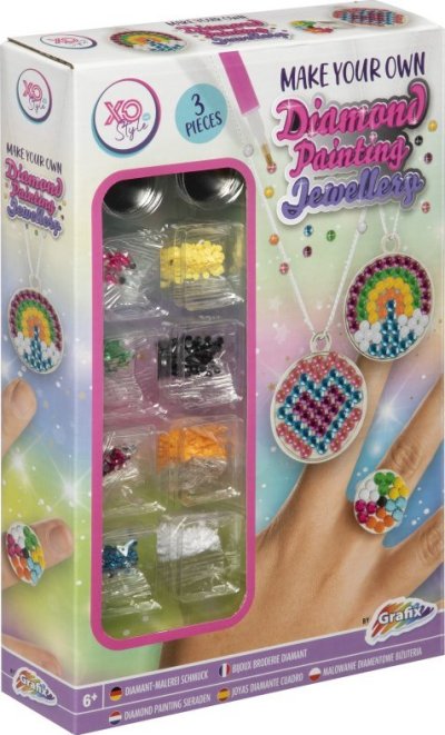 Populární doamantové malování nyní ve 3D! Vyrobte si své vlastní diamantové šperky a ozdobte přívěsky a prstýnek drobnými kamínky. Sada obsahuje: