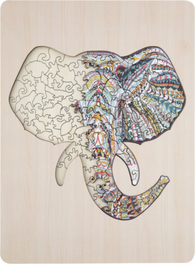 Dřevěné obrysové puzzle s různě tvarovanými dílky včetně podkladové desky vhodné pro děti i dospělé