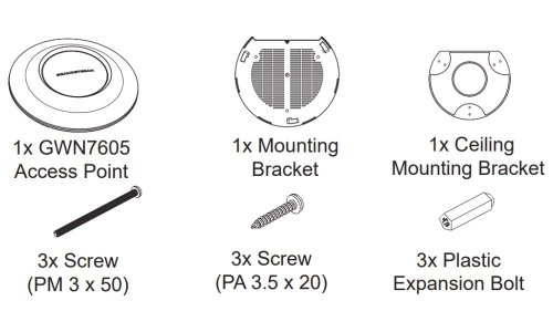Stropní/nástěnný Wi-Fi 802.11ac Wave-2 přístupový bod (2,4 & 5 GHz) určený pro malé a střední bezdrátové sítě. Nabízí dva GbE porty (10/100/1000 Base-T) a dvoupásmovou technologii 2x2:2 MU-MIMO s technologií formování paprsku (beam-forming). Pro zajištění snadné instalace a správy je podporován GWN.Cloud - bezplatná cloudová platforma společnosti Grandstream. Zařízení GWN7605 je ideálním Wi-Fi přístupovým bodem pro nasazení Voice-over-Wi-Fi řešení a nabízí bezproblémové připojení k hlasovým a video IP telefonům Grandstream. Díky podpoře QoS, aplikací s nízkou latencí, Mesh sítí a kaptivních portálů představuje škálovatelné Wi-Fi řešení pro nasazení v maloobchodech apod.