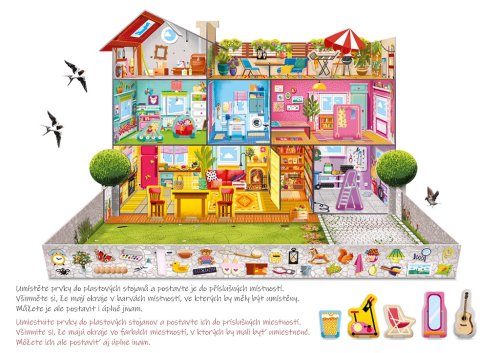 Vítejte u rodiny Grannowských v jejich veselém domečku, kde Vás čeká spousta zábavy, objevování a tvoření. Postavte si vlastní model domečku a vydejte se na dobrodružnou cestu plnou úkolů. Naučte se pojmenovat jednotlivé místnosti, odhalte předměty, které do pokojíčku nepatří, najděte ukryté geometrické tvary, projděte bludištěm a vypátrejte všechny motýlky! Hravou formou si rozvíjejte důležité dovednosti. Hlavní vlastnosti: obsahuje model domečku k sestavení, sadu 10 zábavných úkolů a ilustrovaný návodrozvíjí jemnou motoriku a koordinaci ruka-okorozvíjí slovní zásobutrénuje paměť a koncentracipodporuje pozorovací schopnosti