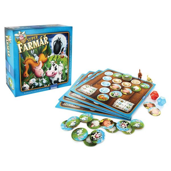 Chováš domácí zvířata a chceš se stát superfarmářem. Tvé stádo se neustále rozrůstá. Všechny tvé plány však mohou být zmařeny, nebudeš-li dost ostražitý! Kolem se totiž potulují liška a vlk a tvá zvířata se mohou stát jejich snadnou kořistí. U příležitosti 10. výročí obnovení výroby hry Superfarmář vznikla její nová, barevnější a prostornější verze, která kromě základních pravidel obsahuje i novou, dynamičtější herní variantu. Pravidla hry, která se opírají o zásady matematiky a logiky, nutí hráče počítat, předvídat, plánovat a kalkulovat s riziky. Tato jedinečná hra učí děti i rodiče strategickému myšlení. Superfarmář de luxe obsahuje navíc 4 hrací plochy, jež hráčům slouží jako ohrady pro jejich stáda; hra je tak pro všechny přehlednější. Superfarmář de luxe je nová, barevnější a prostornější verze oblíbené rodinné hry, která kromě základních pravidel obsahuje i novou, dynamičtější herní variantu. Vznikla u příležitosti 10. výročí obnovení výroby hry Superfarmář, jejímž tvůrcem je významný matematik Karol Borsuk, který pravděpodobně jako první na světě použil pro stolní hru dvanáctistěnnou hrací kostku. Hráči za pomoci dvou takovýchto kostek a směny získávají do svého stáda domácí zvířata – králíky, ovce, prasata, krávy či koně. Superfarmářem se stává ten, kdo jako první shromáždí stádo domácích zvířat, v němž bude alespoň jedno zvíře z každého druhu. Všechny hráčovy plány však mohou být zmařeny, nebude-li dost ostražitý! Kolem stáda se totiž potulují liška a vlk a hráčova zvířata se mohou stát jejich snadnou kořistí. Pravidla se opírají o zásady matematiky a logiky. Tato jedinečná hra pro 2 až 4 hráčů od 7 let tak procvičuje počty, předvídavost, plánování i odhad rizika a učí děti i rodiče strategickému myšlení. Oceněno 3. místem v kategorii Hra, puzzle a karty v soutěži HRAČKA ROKU 2014 a 2. místem v kategorii stolních her v soutěži HRAČKA ROKU 2019. Obsah balení: 4 hrací plochy – ohrady2 různé dvanáctistěnné kostky120 kartiček s obrázky zvířat (60 králíků, 24 ovcí, 20 prasat. 12 krav, 4 koně)4 figurky malých psů2 figurky velkých psůčeský a slovenský návod Hlavní vlastnosti: rozvíjí slovní zásobu učí děti i rodiče strategickému myšlenírozvíjí předvídavost, plánování i odhad rizikanávod v češtině i ve slovenštině Dokumentace: návod ke hře CZ návod ke hře SK Označení „Správná hračka“ je udělováno produktům, které cílí na děti předškolního věku a vynikají zejména výchovnými kvalitami, ale i vysokým standardem zpracování, komfortem používání a estetickou úrovní. Záměrem tvůrců ocenění je poskytovat vodítko a oslovovat rodiče i pedagogy, kteří chtějí ovlivňovat směřování nabídky a za prvořadý považují zdravý osobnostní rozvoj dětí. Tím chtějí tvůrci podněcovat k rozšiřování a vývoji nových hodnotných hraček či her. Označení je udělováno od roku 1994 a je společným projektem Sdružení pro hračku a hru, Asociace hračka Unie výtvarných umělců ČR a Asociace předškolní výchovy. Tato sdružení společně s Uměleckoprůmyslovým muzeem v Praze a Městským muzeem v Kamenici nad Lipou udělují ocenění při příležitosti festivalu Hračkobraní konajícího se každoročně od roku 2006 na zámku v Kamenici nad Lipou, kde můžete mimo jiné zhlédnout stálou expozici všech oceněných hraček.